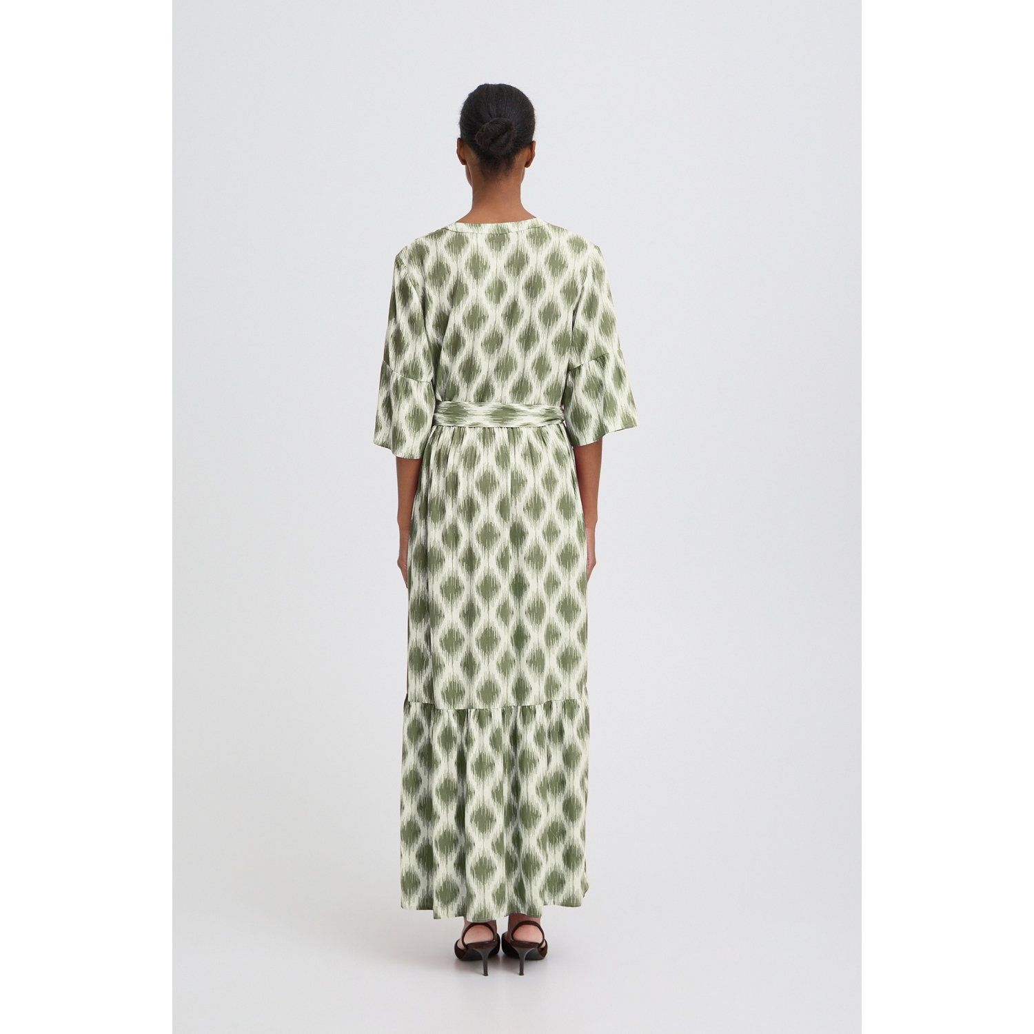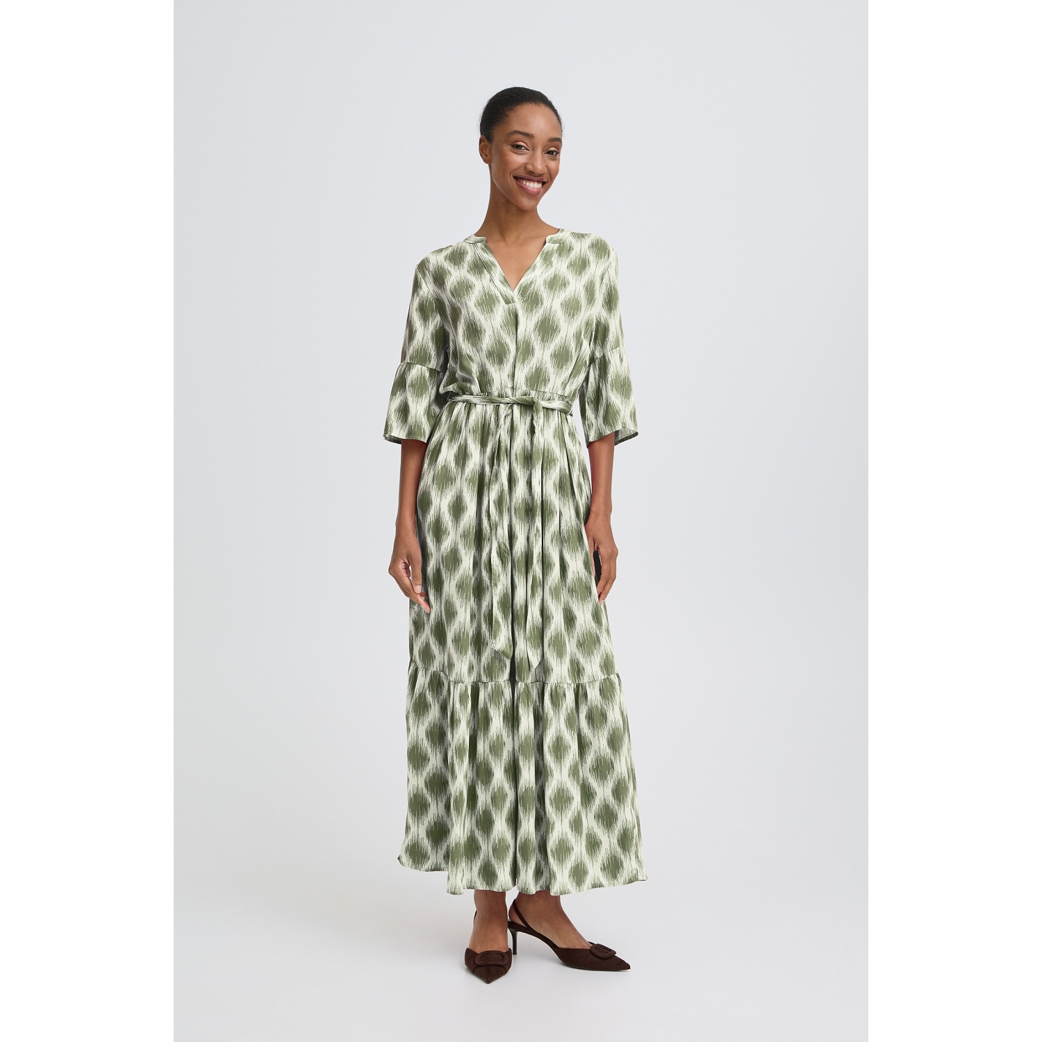 Belle robe fluide, longue, légère et à motif avec manches 3/4 pour femme de la marque B Young.