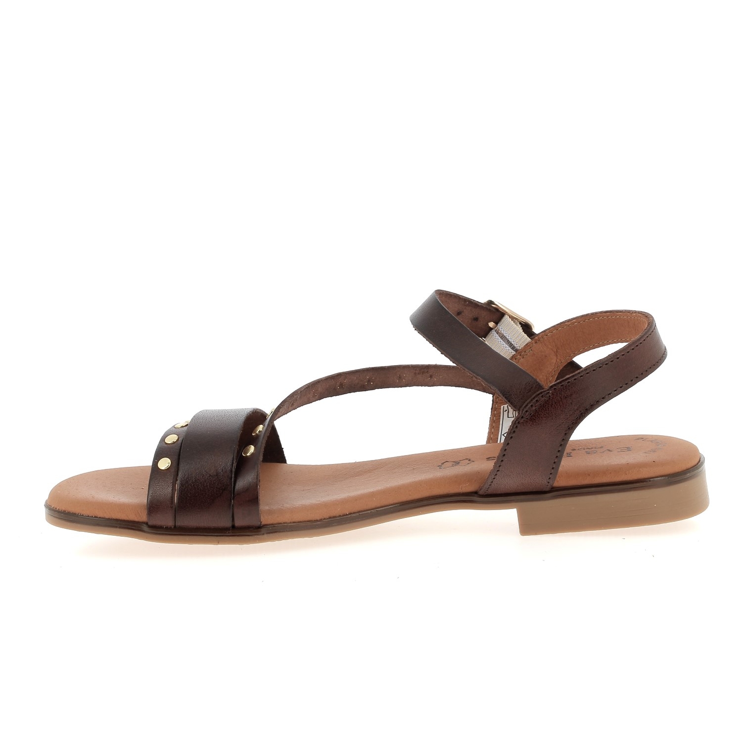 Sandales plates avec détails clous en cuir pour femme de la marque Eva Frutos.