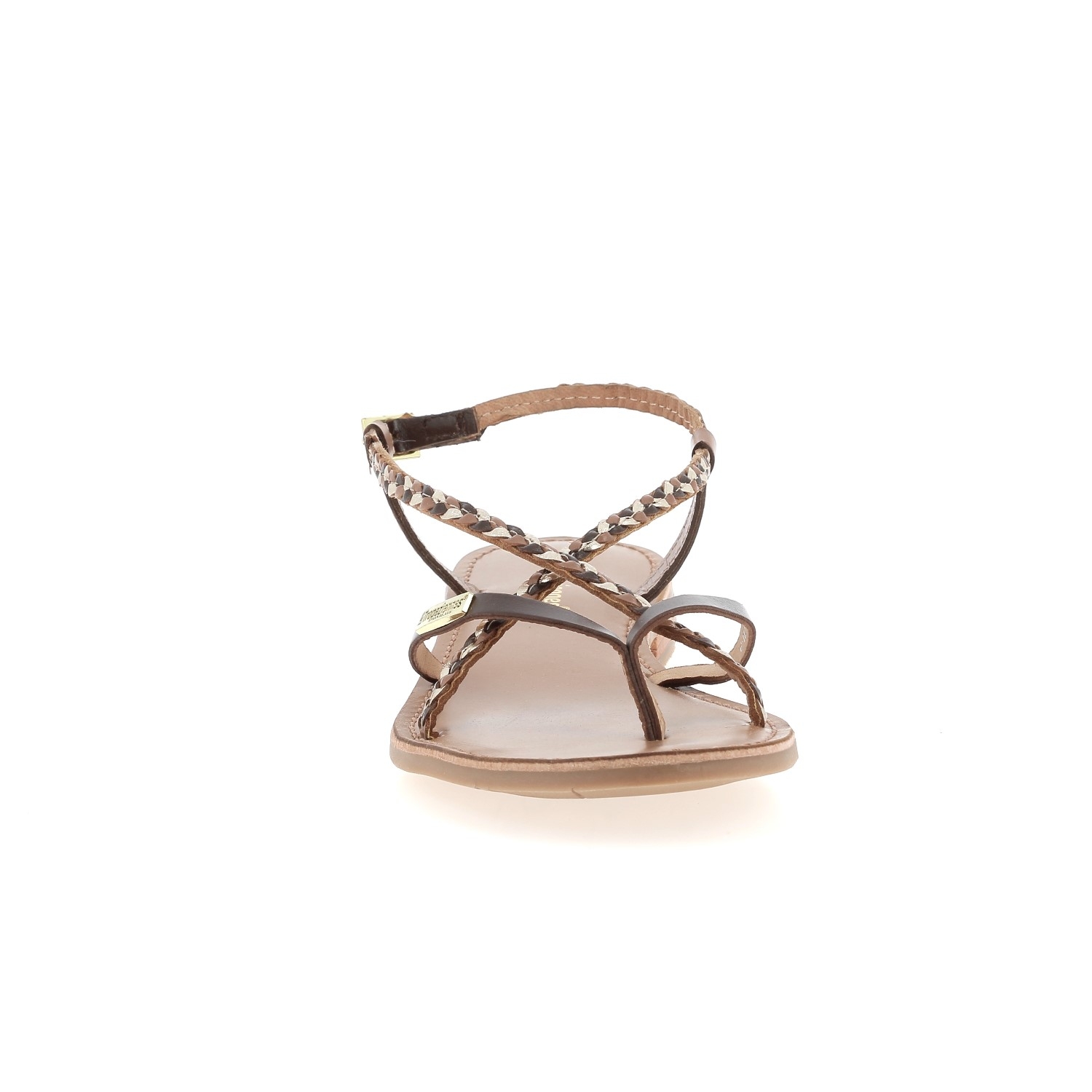 Sandales entre-doigts en cuir tressé pour femme de la marque Les Tropéziennes.