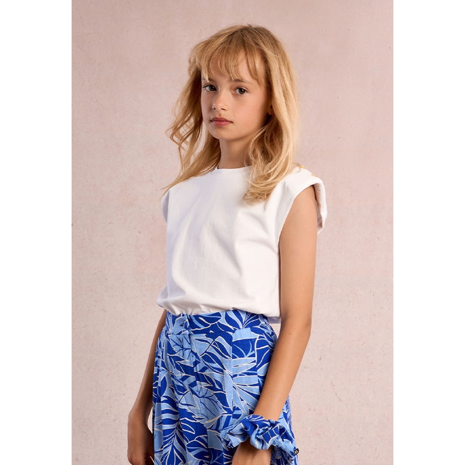 T-shirt à épaulettes blanc pour fille de la marque Mini Molly.