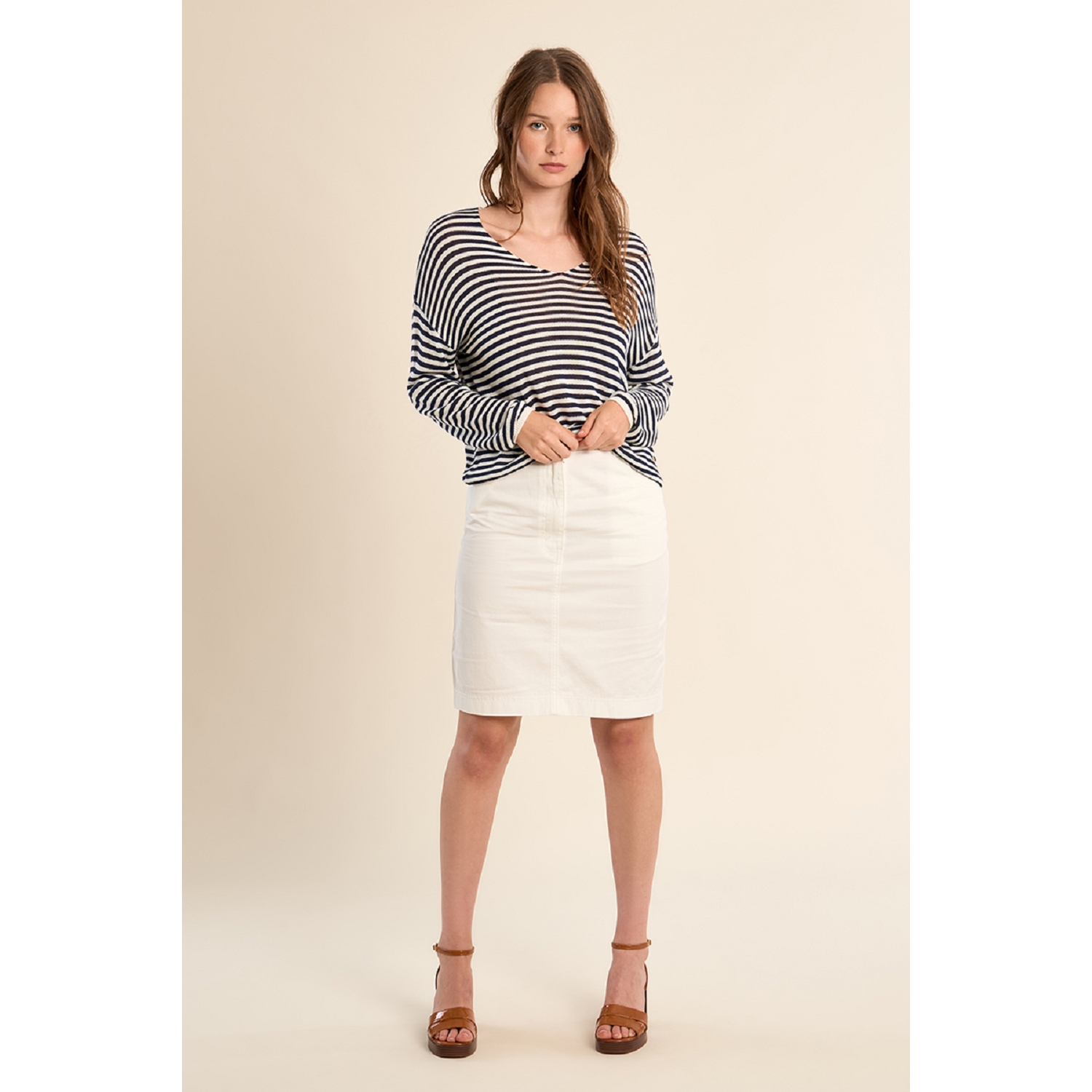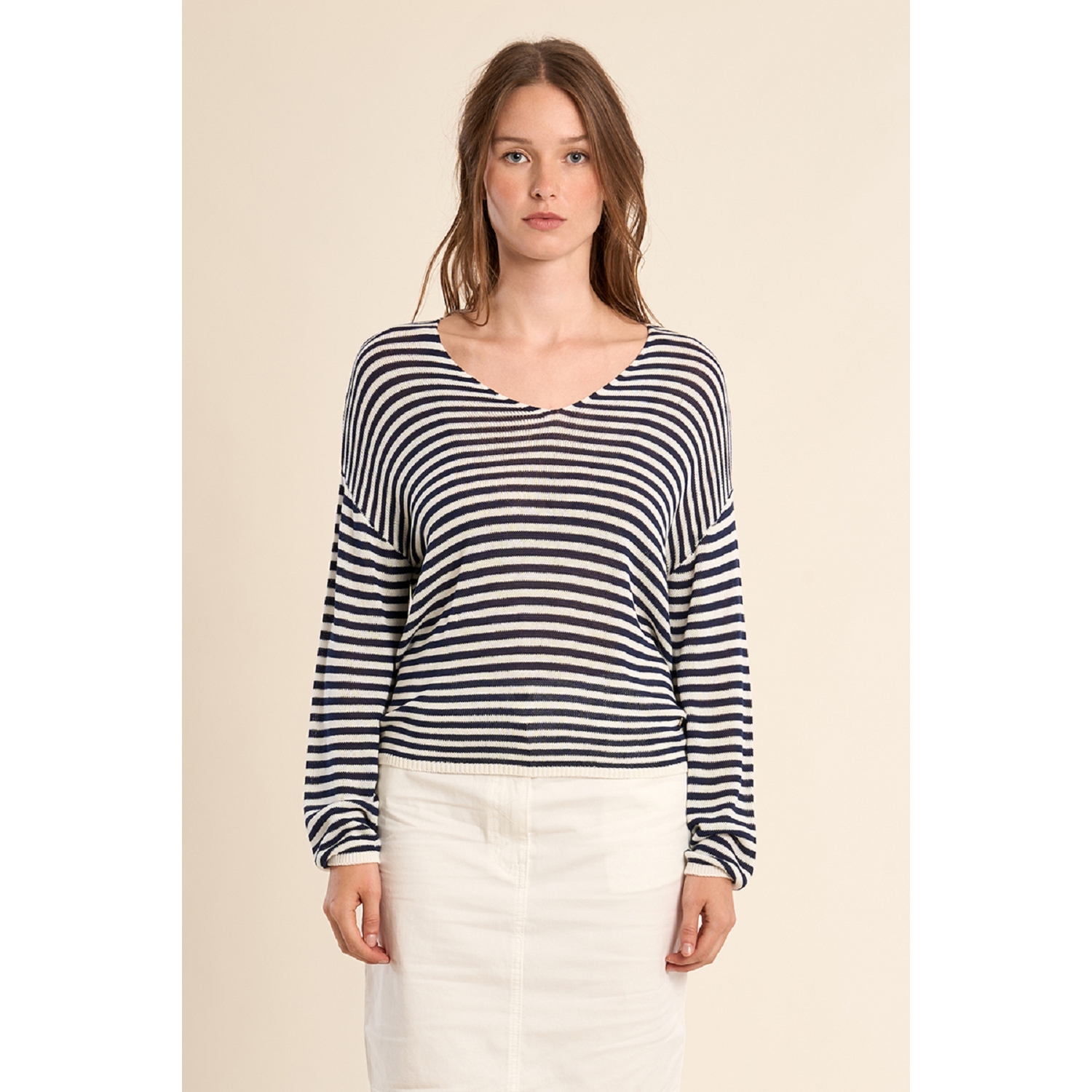 T-shirt marinière en maille et manches longues pour femme de la marque Molly Bracken.