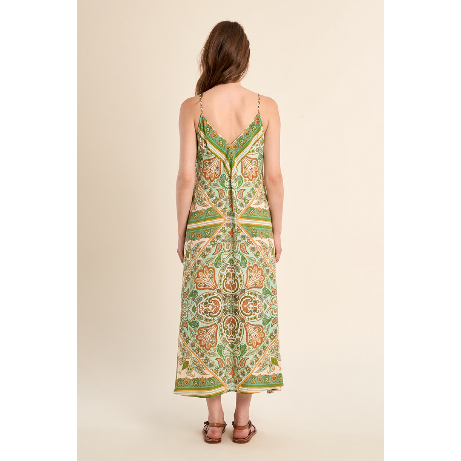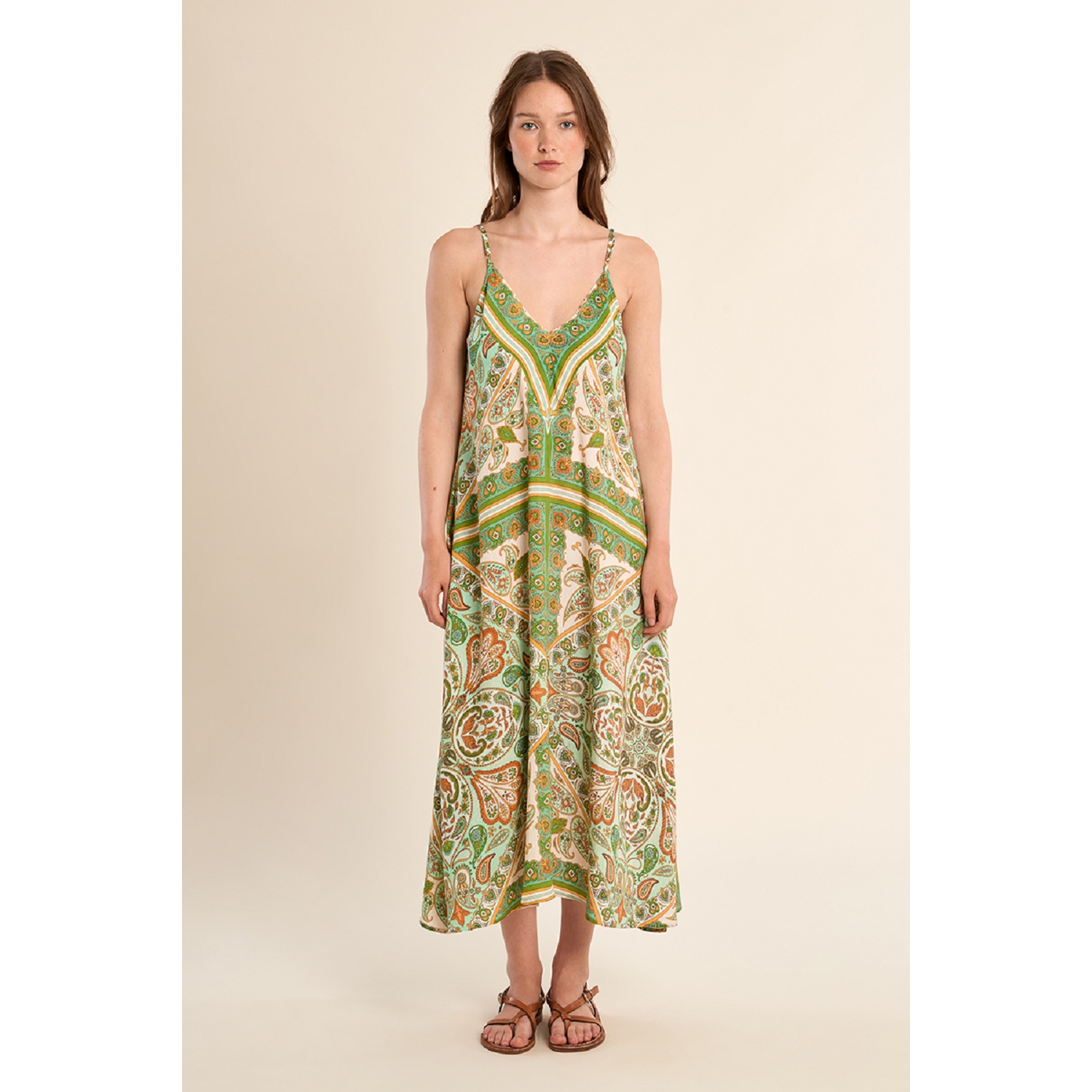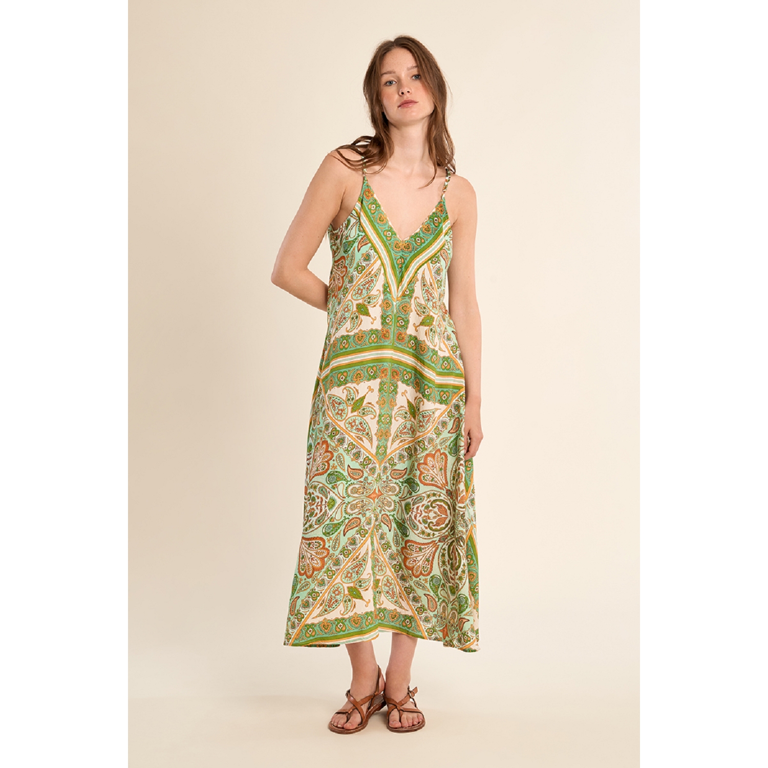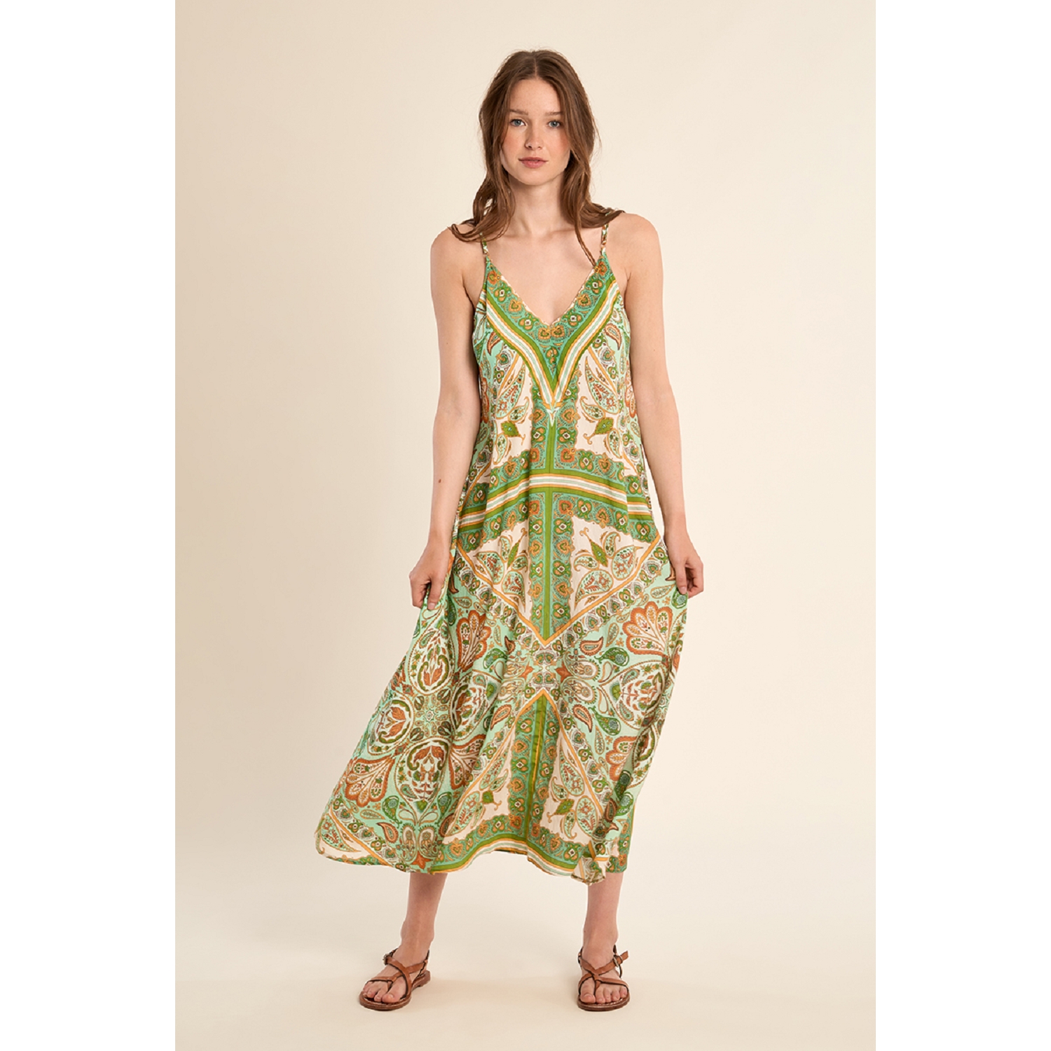 Longue robe fluide à imprimé pour femme de la marque Molly Bracken.