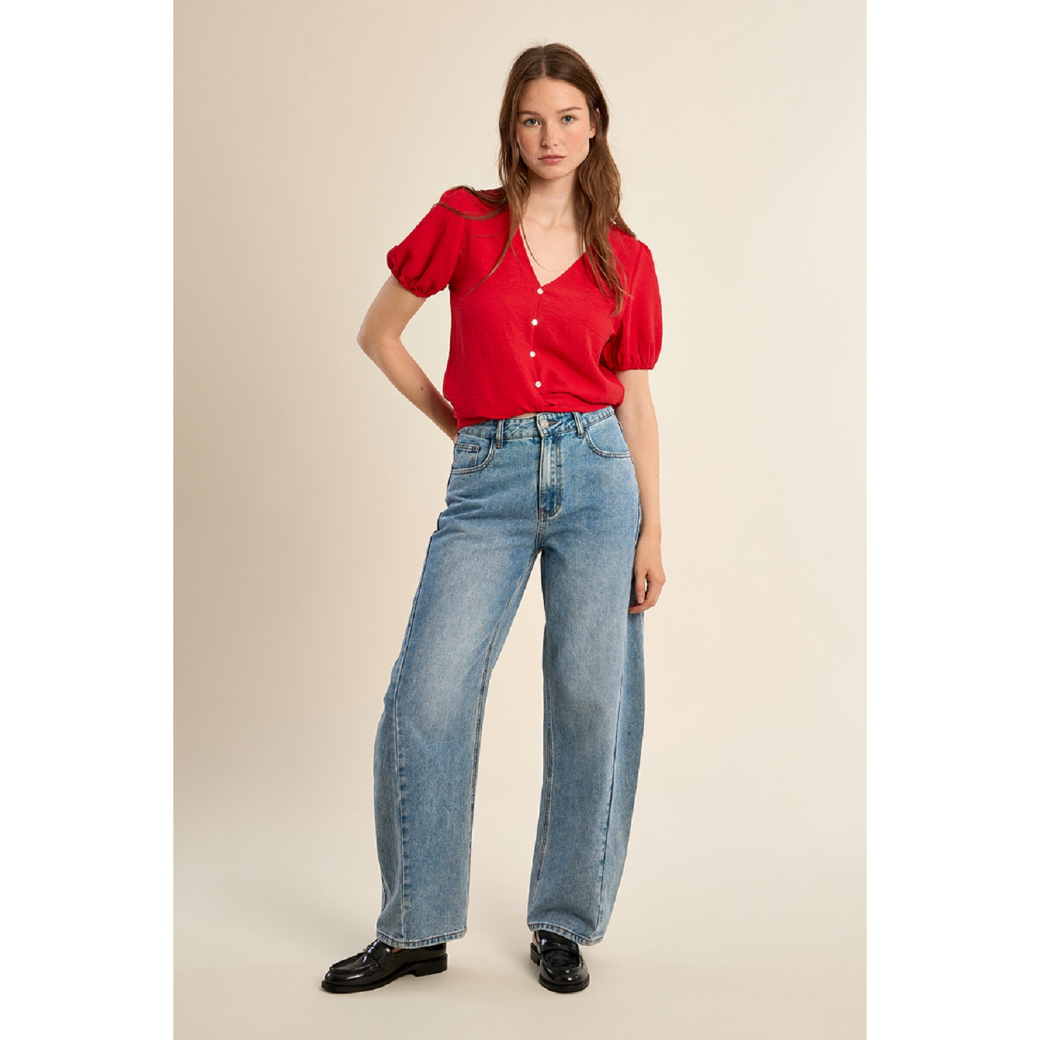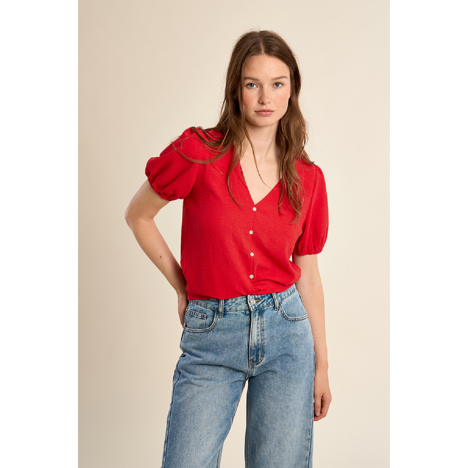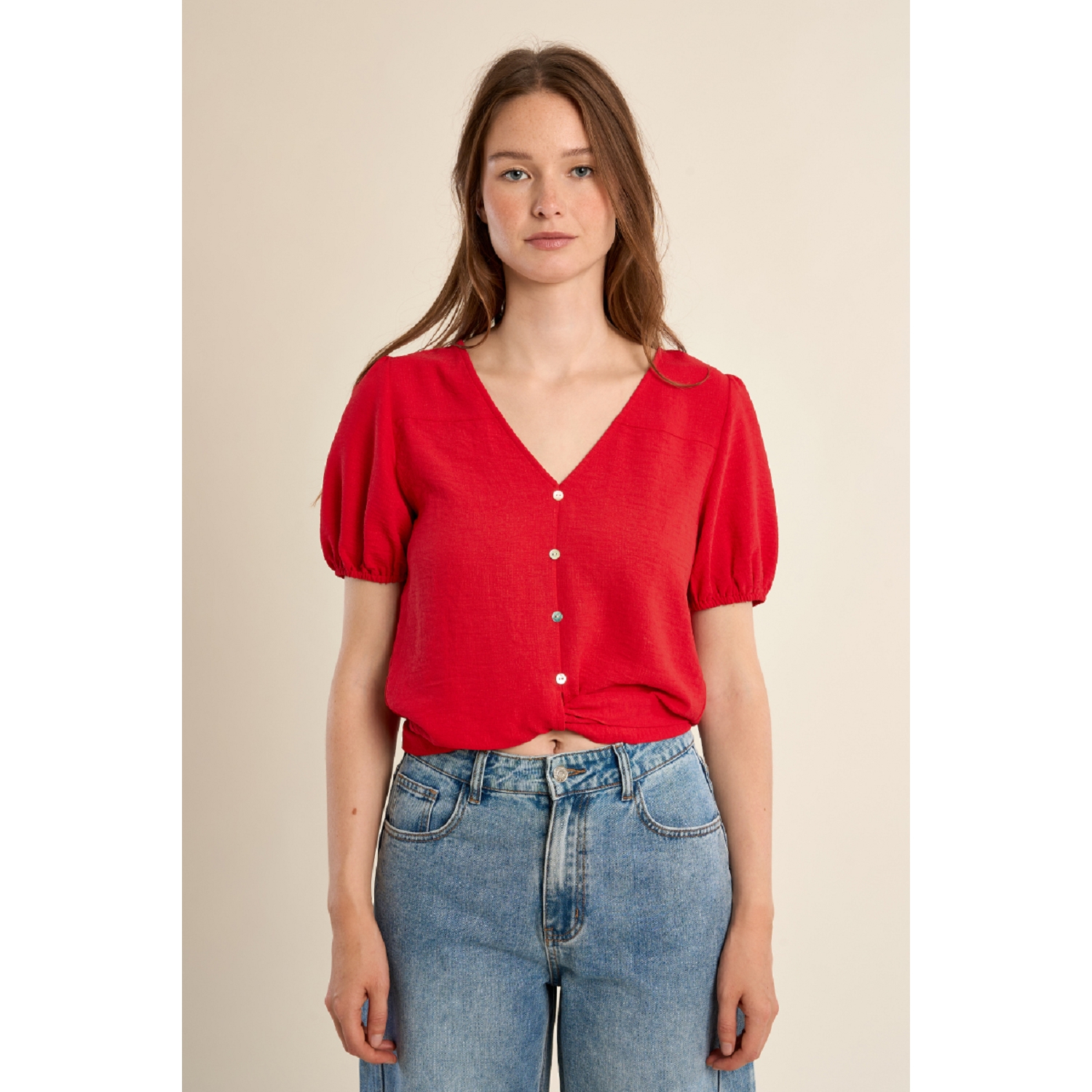 Top court à nouer manches courtes pour femme de la marque Molly Bracken.