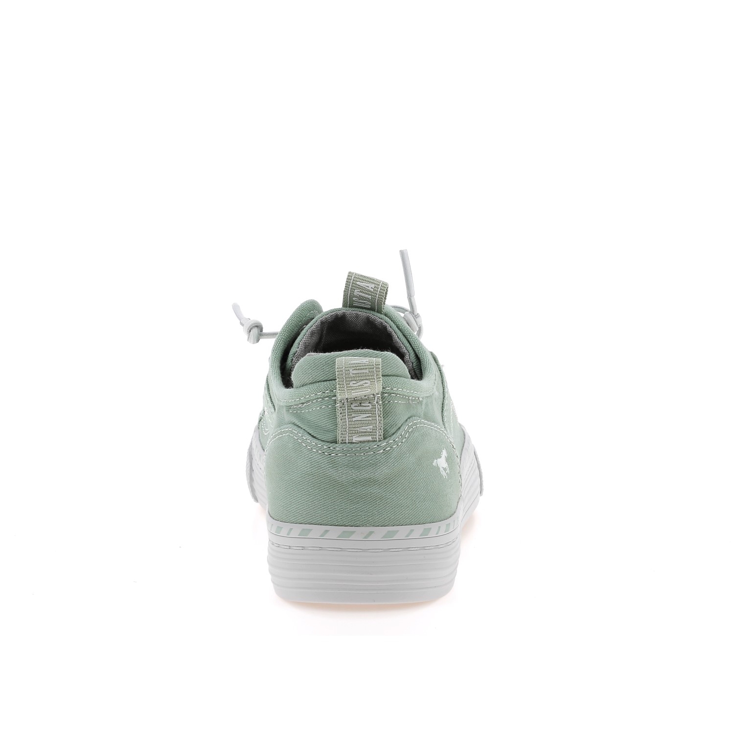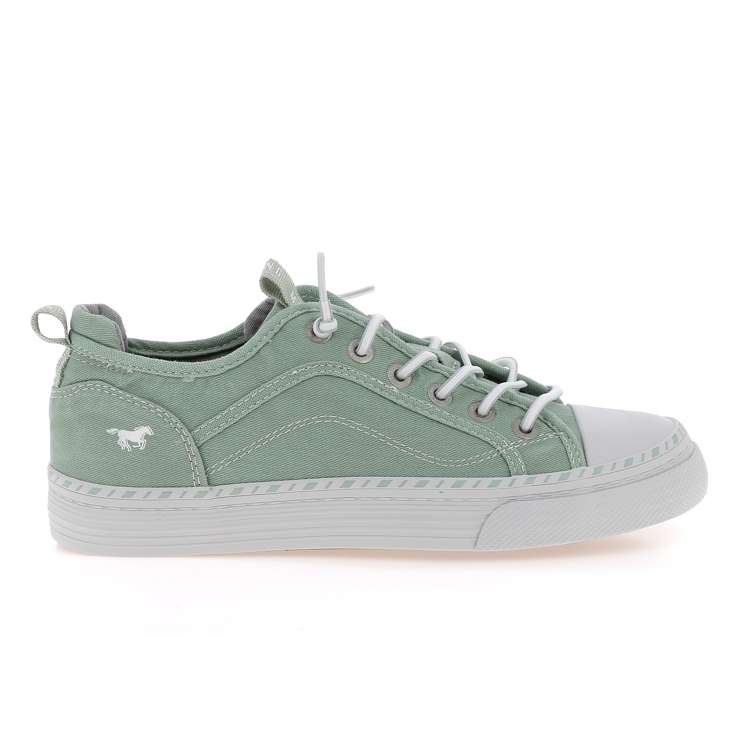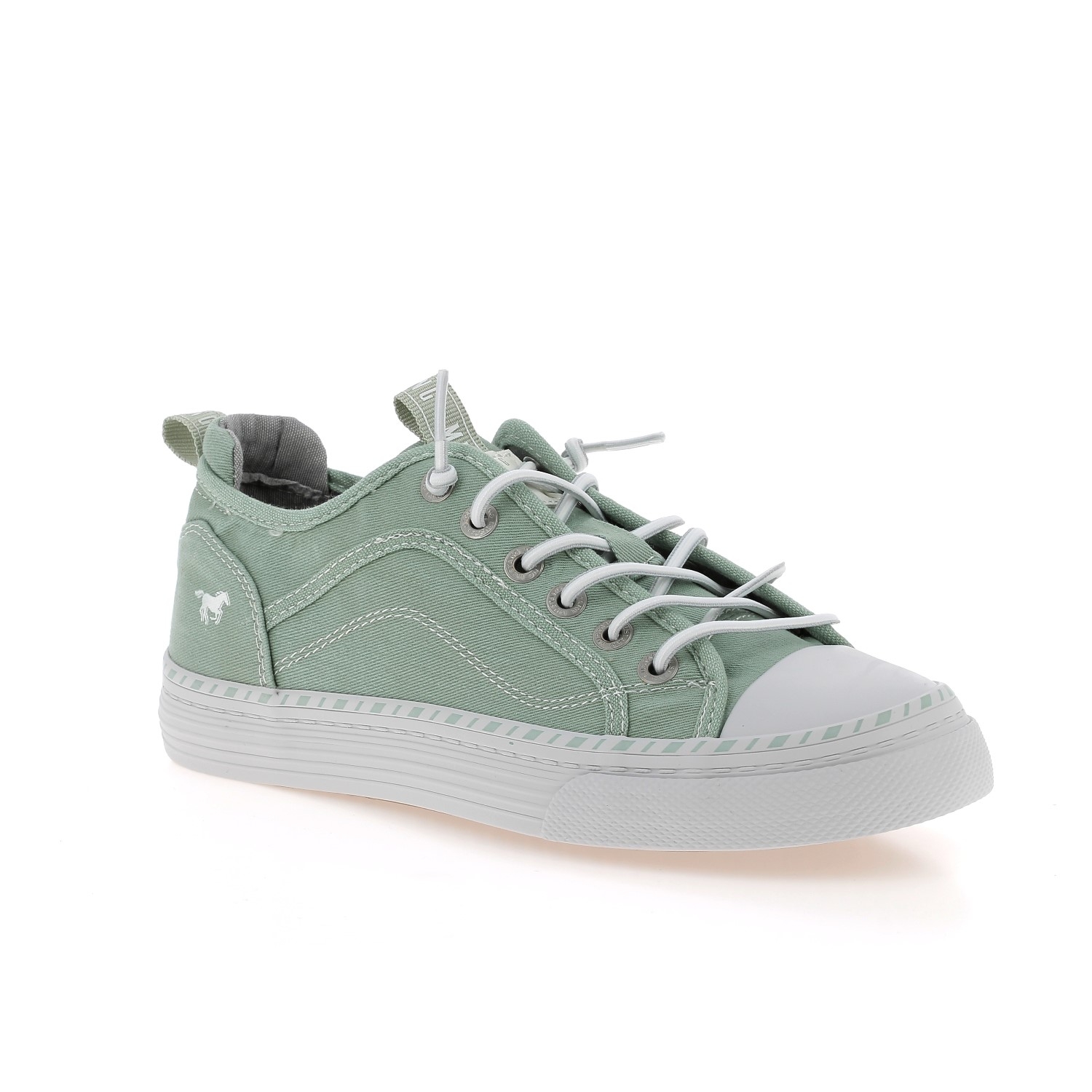 Baskets basses en toile pour femme de la marque Mustang. Chaussures basses vertes claires, légères parfaites pour le printemps et l'été.