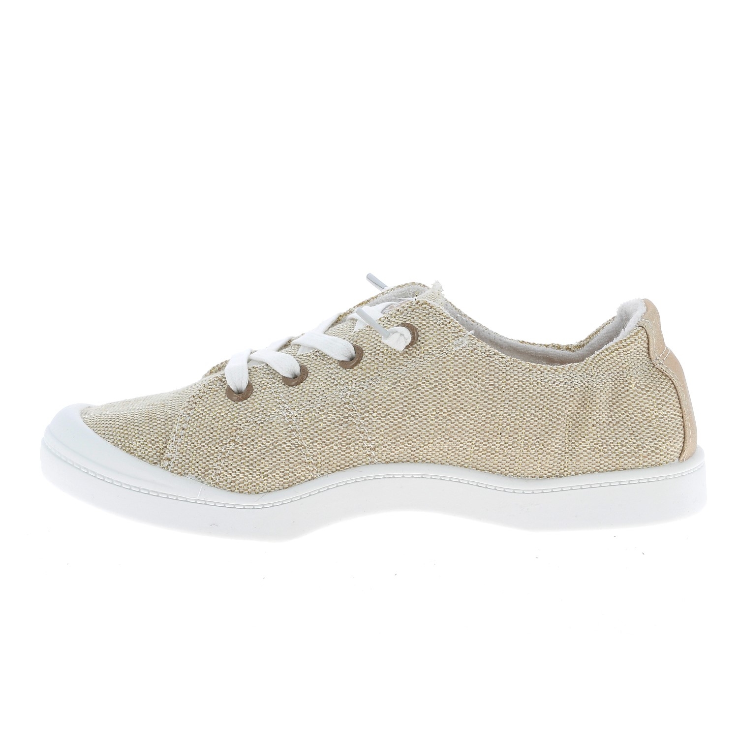 Baskets en toile ROXY Bayshore III - Femme Marque : Roxy Modèle : BAYSHORE III Style : Décontracté & estival Coloris :Paille Esprit libre, look relax : la BAYSHORE III de Roxy est l’alliée parfaite pour toutes celles qui veulent surfer sur la vague du style sans sacrifier leur confort. Avec son design ultra léger et sa silhouette effortless, cette sneaker incarne l’essence même de la cool attitude. Facile à enfiler, facile à aimer : sa coupe basse, ses lacets élastiques et sa semelle souple en font un indispensable des journées ensoleillées. Que ce soit en bord de mer, en ville ou en festival, elle suit tous tes mouvements avec une aisance naturelle. Tige en toile respirante au style beachwear affirméSemelle intérieure matelassée pour un confort maxFermeture élastique : effet lacé sans prise de têteStyle passe-partout : à matcher avec short en jean, robe légère ou combi fluide Une paire comme une brise d’été : discrète, stylée, et toujours prête pour l’aventure. La BAYSHORE III, c’est la sneaker chill par excellence signée Roxy.