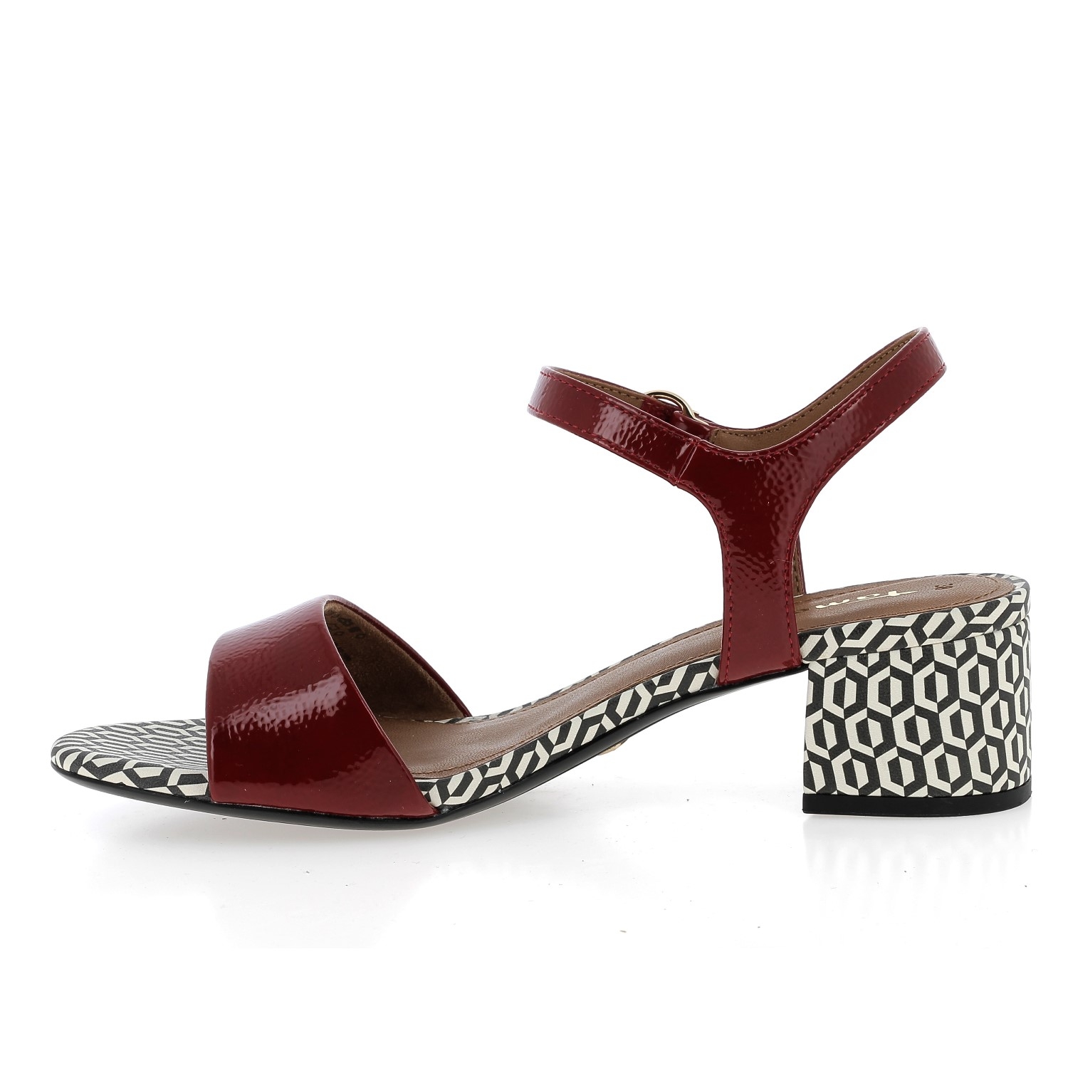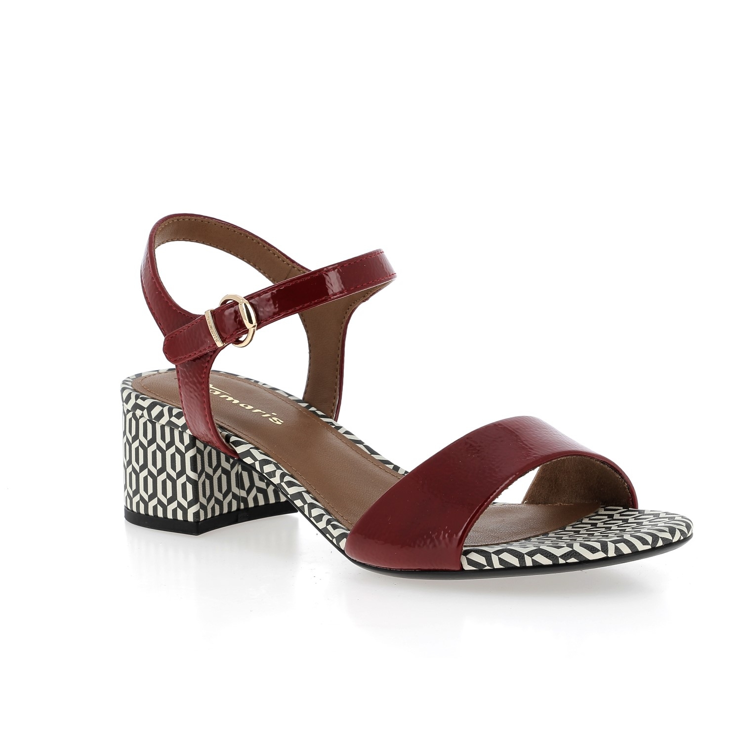 Sandales à talon vernis et à motif pour femme de la marque Tamaris.