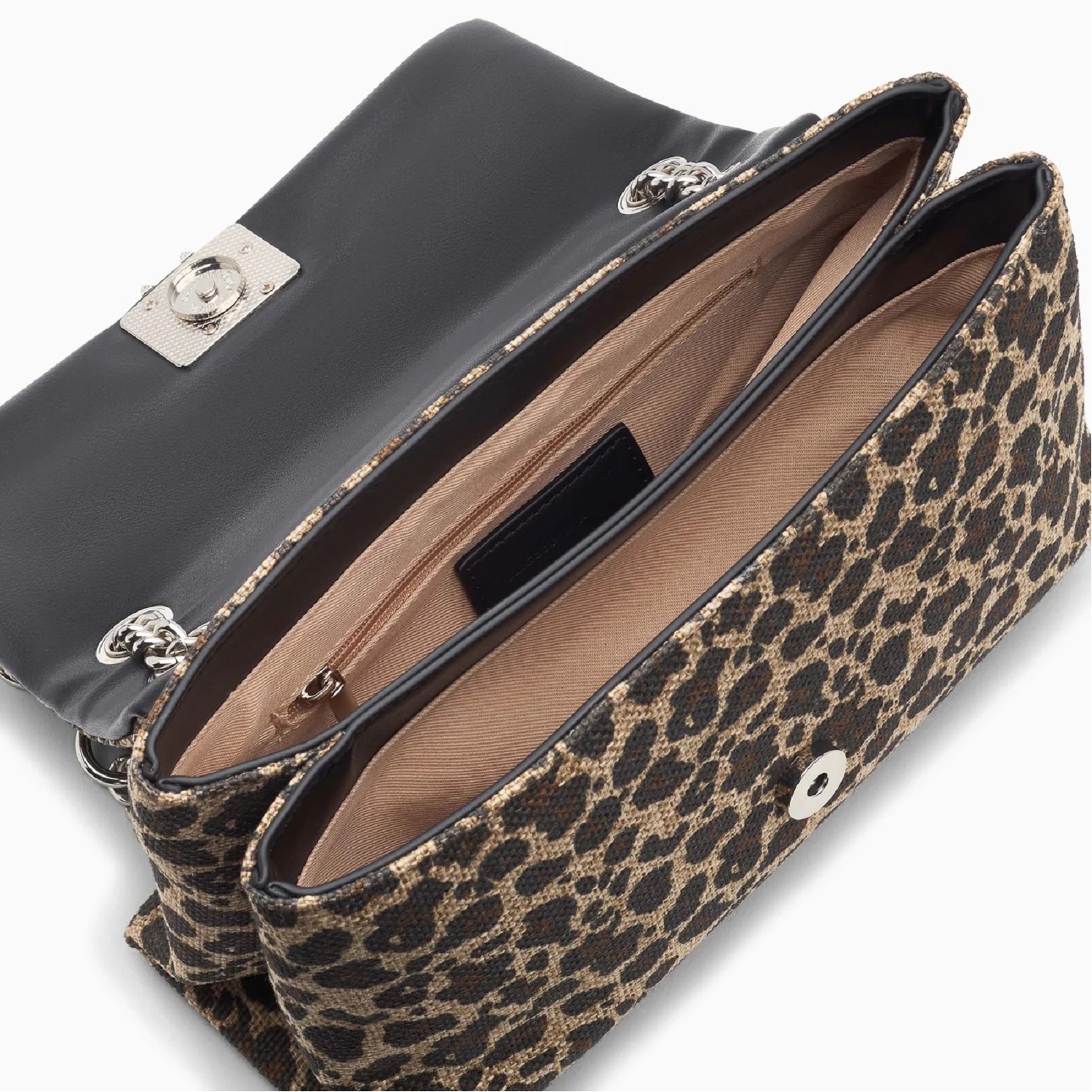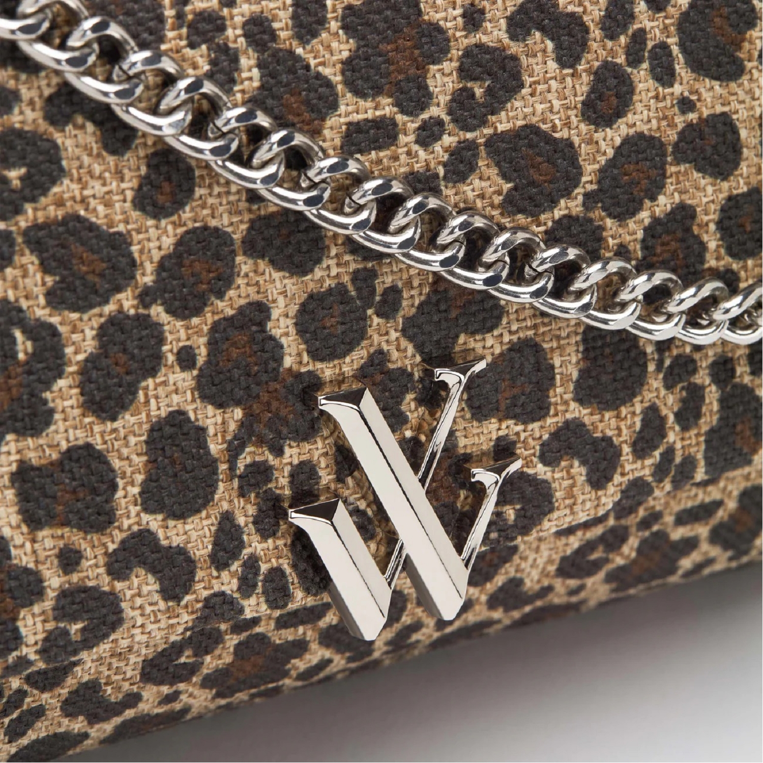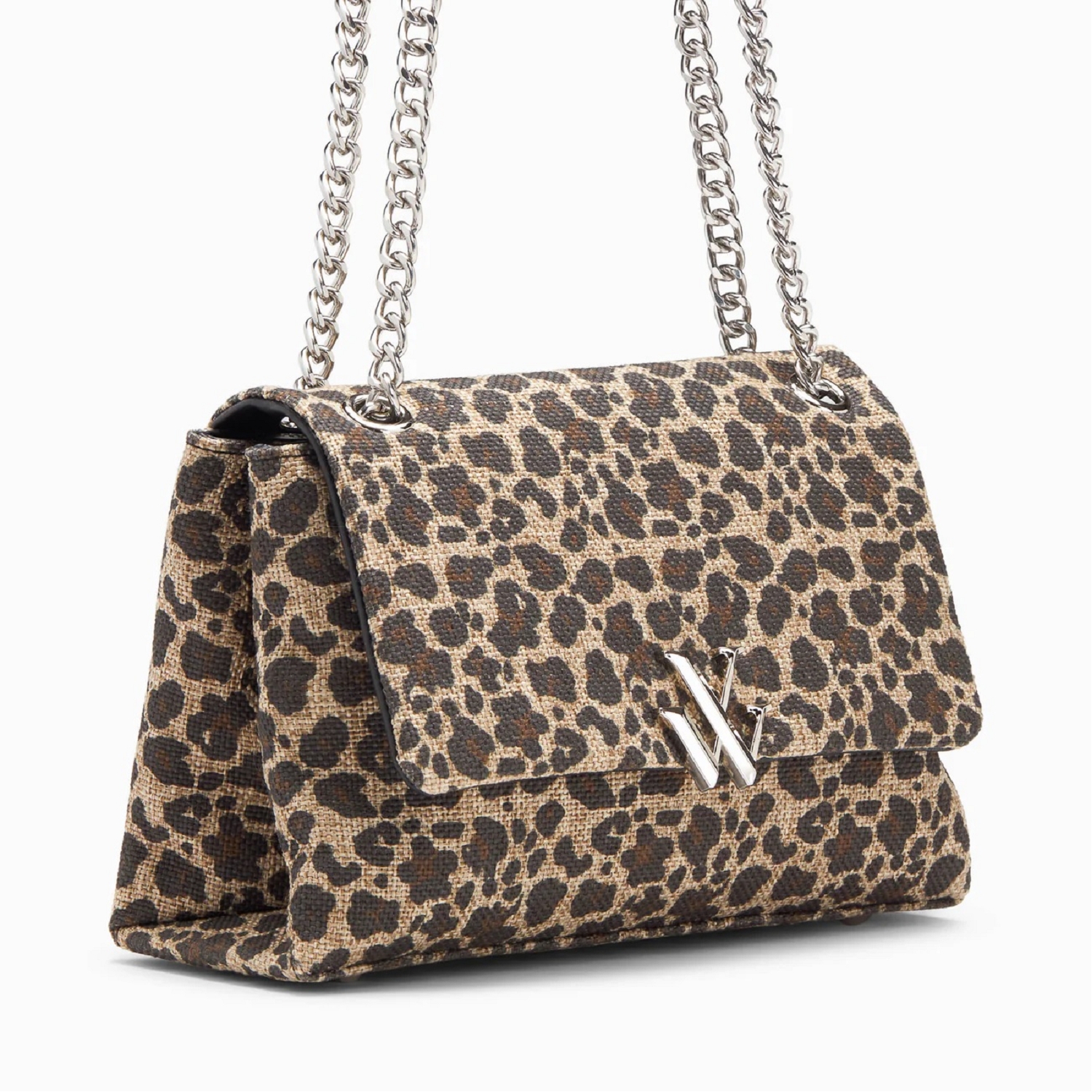 Sac à main Naomi léopard à chaîne pour femme de la marque Vanessa Wu. Sac à main en toile canva à imprimé léopard Fermeture à rabat avec bouton magnétique et logo argenté Deux compartiments intérieurs avec une poche plaquée ouverte et une poche plaquée à fermeture éclair Chaîne à maillons argentés avec empiècements en similicuir noir Anses ajustables pour un porté épaule ou en bandoulière Hauteur : 15,5 cm Largeur : 25 cm Profondeur : 9,5 cm Hauteur de l'anse : 23 - 46,5 cm Longueur de l'anse : 62,5 - 100,5 cm Type de porté : Bandoulière, Épaule